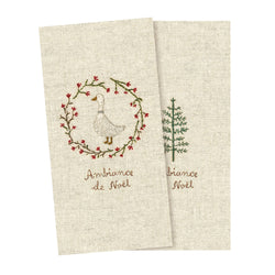 Bring a touch of Nordic magic to your holiday table with the Maileg Napkin Goose Small. Featuring a charming white goose nestled within a festive berry wreath and the sweet phrase Ambiance de Noël, these napkins blend rustic elegance with whimsical warmth. Ideal for Christmas gatherings, they add a refined, storybook quality to any seasonal celebration. Pack contains 20 napkins measuring 8.5cm x 16.5cm folded.