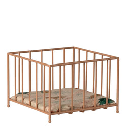 The Maileg Playpen Micro Dark Powder is a charming essential for caring for the smallest Maileg friends. Crafted from sturdy metal in a warm dark powder shade, it includes a padded mattress with a playful cowboy pattern, bringing comfort and colour to miniature play. Perfectly sized for micro bunnies and rabbits, it helps children create gentle nursery scenes and adds a sweet, thoughtful detail to any Maileg collection. A lovely piece for imaginative storytelling and beautifully styled dollhouses. Measures L12cm x W12cm x H8cm.