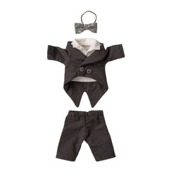 Suit up your Dad Mouse for a day of celebration with this classic Maileg wedding outfit. This charming set includes a tailored jacket, matching trousers, a neat shirt and a bow tie, all crafted from quality cotton fabrics. Made to fit Maileg Dad Mouse perfectly, it brings a polished finishing touch to wedding-day storytelling, keepsake gifting and beautiful display scenes in your Maileg mouse universe.