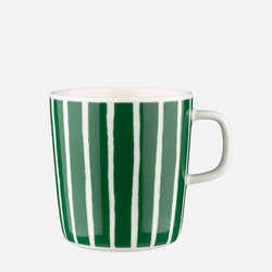 The Oiva mug with Piccolo Pattern is made of white stoneware that is dishwasher, oven, microwave and freezer proof. Holds 400ml. Measures H10cm x Ø9.5cm.