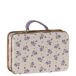 A toy metal suitcase with a beautiful print. The suitcase is not only suitable for playing but also a perfect package for a small gift or to keep small items. Measures 7cm x 11cm.