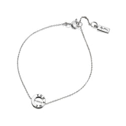 Bracelet in sterling silver with a small ring stamped with "You & Me". The bracelet is adjustable in size of 17cm or 19cm. Ring measures 8.5mm in diameter.