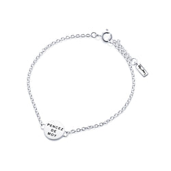 Bracelet in recycled sterling silver with a plate stamped with “Pencez De Moy” - think of me in 14th century French. The bracelet has adjustable size of 17cm or 19cm. Décor: 11.0mm. Height: 1.5mm.