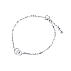 Bracelet in recycled sterling silver with two rings linked together. One rounded ring and one squared with the words “Amor Vincit Omnia“ - love conquers all in Latin. The bracelet has adjustable size of 17cm or 19cm. Décor: 2mm x Ø 8mm.