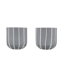Set an elegant table with these striped tumblers from the Mizu series. Characterized by a graceful and modern expression that fits well into the contemporary home. The glasses are ideal for serving all kinds of drinks. Each glass is unique as it is mouth blown, with handmade details. Comes as a set of two. Capacity 320ml each. Measures H8.2cm x Γ8cm. Dishwasher safe.