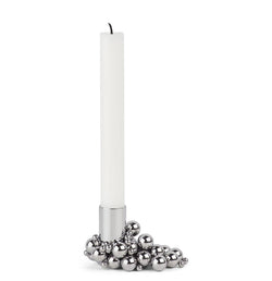 Molekyl is a unique candle holder that plays with materials, magnets, shapes and individuality. The final design of Molekyl is unfinished, with the ultimate shape decided by you. The candle holder comes with 25 large and 25 small steel balls. With endless possibilities for arranging the holder as you wish, no two Molekyl candle holders are the same. Place some of the steel balls under a thin table to play with perceptions of space and gravity. Alternatively, create your design using the larger balls as the base, then decorate with the small balls. Dimensions: Cylinder: 2cm (Dia) x 3.3cm (H). Steel Balls: 1.5cm (Dia) and 0.6cm (Dia).