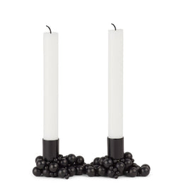 Molekyl is a unique candle holder that plays with materials, magnets, shapes and individuality. The final design of Molekyl is unfinished, with the ultimate shape decided by you. Each candle holder comes with 25 large and 25 small steel balls. With endless possibilities for arranging the holder as you wish, no two Molekyl candle holders are the same. Place some of the steel balls under a thin table to play with perceptions of space and gravity. Alternatively, create your design using the larger balls as the base, then decorate with the small balls. Dimensions: Cylinder: Ø2cm x H3.3cm. Steel Balls: Ø1.5cm and Ø0.6cm.