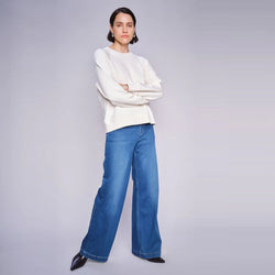 The Mos Mosh Dara Deluxe Jeans in Mid Blue offer timeless style with a contemporary twist. Crafted from a luxe blend of viscose, cotton and lyocell, they feature a flattering high-rise waist and wide-leg cut for effortless elegance and all-day comfort. Finished with a classic five-pocket design and eye-catching contrast stitching against the rich denim.Β Perfect for pairing with cosy knits or crisp shirts, these jeans bring Scandinavian ease to any wardrobe.