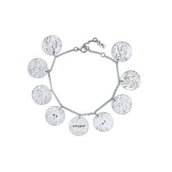 Bracelet with discs in a recycled sterling silver chain. The bracelet has adjustable length of 16cm, 17.5cm or 19cm. Décor: 16mm.