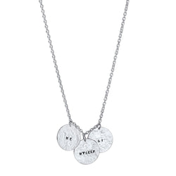 Necklace with three hanging round charms on a recycled sterling silver chain. Necklace has adjustable length of 60cm or 70cm. Décor: 16mm.