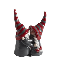 Celebrate the season of love and togetherness with the Naasgransgarden Grankvist Happiness Decoration. This charming ceramic figurine features two sweet gnomes sharing a kiss, their tall red and grey striped hats touching as they lean in with joy. Handcrafted with playful detailing, it captures the warmth, whimsy and heart of Scandinavian Christmas traditions. Perfect for gifting to a loved one or for adding a romantic touch to your festive décor, this delightful piece will bring a smile year after year. Measures H9.5cm.