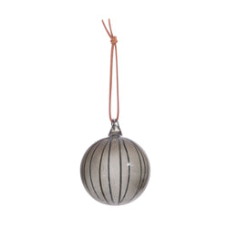 Hanging glass Christmas decoration measuring 8cm in diameter.