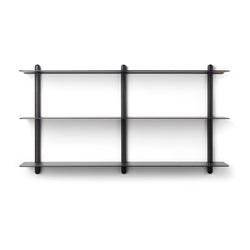 Nivo is a minimalistic wall shelf designed by Böttcher & Kayser for Gejst. With no unnecessary details and clean lines, Nivo hangs lightly and elegantly on the wall. Every component has been carefully thought out both in terms of design, form and function. There are no visible screws and the shelves are smoothly plugged in to the wooden poles, that have slits made exactly to fit. Measures 118cm (W) x 65cm (H) x 25cm (D). Max load is 10kg per shelf.