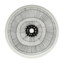 Bring a crisp Nordic feel to the table with the Marimekko Oiva Plate Flower. This striking design pairs fine black linework with a bold floral centre, creating a calm, graphic look that feels both modern and timeless.