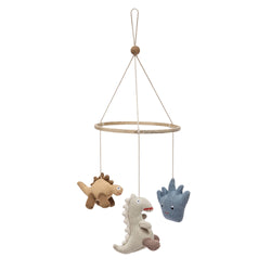 Bring whimsical charm to your nursery or child's room with the OYOY Dino Mobile. Featuring four adorable dinosaur friends in soft, muted colours, this decorative mobile is designed to delight little eyes and soothe them to sleep. Made from soft cotton, each piece is crafted with care - adding a playful, Scandinavian touch to your space. Hang it above the cot, changing table, or in a cosy reading nook to create a dreamy, imaginative atmosphere. Measures Ø20cm x H46cm.