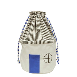 The OYOY Koya Storage Basket Large is a playful and practical storage solution for little ones' spaces. Designed to resemble a whimsical house, it features charming window and door details, a striped drawstring top and sturdy cotton canvas construction. Ideal for storing toys, clothes or blankets, it keeps things tidy while adding a fun, decorative touch to the room. Available in two colourways, itβs both functional and full of character.