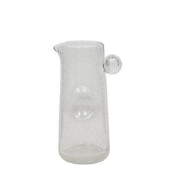 The Kuki Jug features bubble splashes that add a touch of whimsy to its minimalist design. Its elegant shape blends functionality with timeless aesthetic, making it perfect for any table setting. Use it for everyday dining or special occasions. Being mouthblown, each jug will vary in size, adding to its unique charm. Measures Ø7.5cm x H17cm.