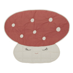 The Mushroom Quilted Blanket combines comfort and whimsy with its charming design and high-quality materials. Crafted from 100% organic cotton and filled with 100% micro-soft polyester fiber, this blanket offers a cozy and soft touch. Featuring heavy stitching for durability and a beautifully embroidered mushroom face, it adds a playful and delightful element to any child's room. Measures L98cm x W120cm.