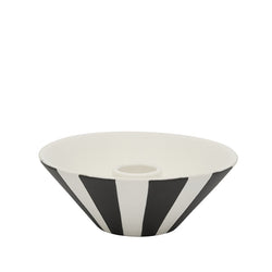 Bring graphic flair to your home with the OYOY Toppu Candle Holder Low in white and black. With its signature bold stripes and flared bowl-like shape, this ceramic holder adds striking detail to any surface. Perfect for taper candles, it blends functionality with artistic design - ideal for modern, Scandinavian-inspired interiors.