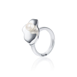 Oyster-shaped ring in sterling silver with a freshwater pearl. Décor: 25.5 x 14.5mm, shank: 3 x 2mm. Freshwater pearl: 6.5mm.