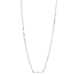 Necklace in recycled sterling silver with three plates stamped with the words "Me", "Breathe" and "Life". Length of chain is 80cm.ย Dรฉcor: 3.5mm x 23.5mm.