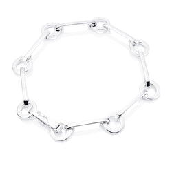 Bracelet with eight connected rings in recycled sterling silver. Bracelet: 20cm. Décor: 20mm length. Ring Ø 10mm.