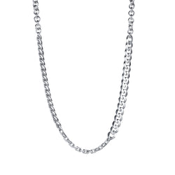 Sterling silver necklace with a 14cm armor chain, 9cm flat ground anchor chain, 13cm Mojo chain and round chain 6cm & 7cm. Total necklace length 50cm.