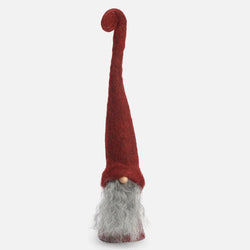 Alfred has a long, wool cap which curls up at the end. With his button nose made of wood and fluffy beard made from Swedish Gotland wool. Measures 25cm tall. Made in Sweden.