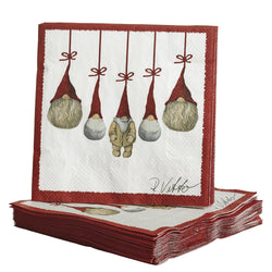 Add a dash of Nordic humour to your holiday table with the Naasgransgarden Santa Paper Napkin. Measuring 25xm square (unfolded), this festive napkin features a delightful design of hanging Santa gnomes with tall red hats, accented by a warm red border. Perfect for Christmas gatherings, fika moments or seasonal entertaining, these napkins bring both charm and convenience to your celebrations. Comes as a pack of 20.