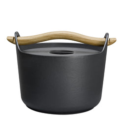 With a wooden handle and a cast iron body, this ultimate design classic is as functional in the kitchen as it is appealing on the dining table. The cast iron ensures slow, even cooking both on the stove and in the oven, and the enamel surface guarantees easy cleaning. The ingenious curved handle lets one lift the entire pot to the table or only the lid without burning oneβs fingers. Measures 22.5cm (W) x 18.6cm.