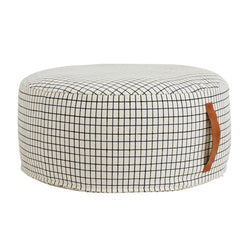 The Sit On Me Pouf is beautiful and practical. The leather handle makes it easy to move around from room to room. The graphic pattern gives a modern look. Made of cotton with a printed pattern and filled with Styrofoam beads. Measures 65cm (Dia) x 32cm (H).