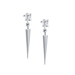 Earrings in recycled sterling silver in shape of dramatic spikes with crystal quartzs. Total length spike: 43.3mm. Rivet stud: 6.4mm diameter. Crystal Quartz: 2pcs x 3.2ct.