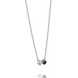 Necklace in recycled sterling silver with a crystal quartz and an onyx. The necklace has adjustable length of 40cm, 42cm or 45cm. Décor: 14.5 x 7.5mm. 1pc x Crystal quartz, 1pc x Onyx, 6mm.