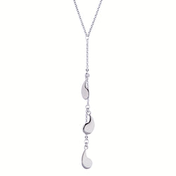 Necklace in sterling silver with three falling waterdrops. Pendant: 80mm. Length of necklace is adjustable between 42-45cm.