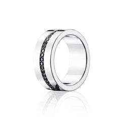 Eternity ring in sterling silver with a full circle of black diamonds. Shank: w8 x h2mm. Diamonds (treated): 0.44 ct brilliant cut (size 17.50 - ct may vary depending on size). Produced in Sweden.