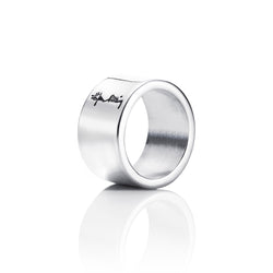 Wide, plain ring in recycled sterling silver with signature. Shank: w 12 x h 2 mm.
