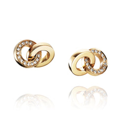 Earrings in recycled 18k gold with two linked rings, one set with diamonds. Earring: 14 mm. Diamonds: 0.13 ct tw/si brilliant cut.